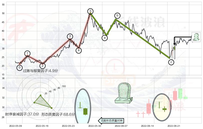 ➢ 墓碑十字线(墓碑线) 🔜 波浪理论击穿破位C点继续下跌 综合量化分数:47.07 【中性】