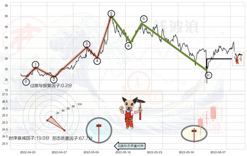 ➢ 下跌身怀六甲 🔜 波浪理论击穿破位C点继续下跌 综合量化分数:45.91 【偏空】