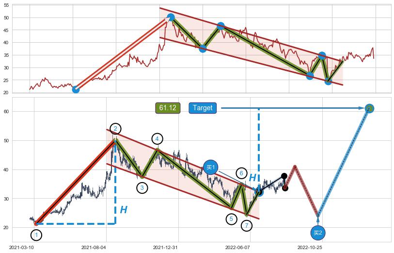 ➣ 最小中继整理涨幅→𝐇: 28.82 (𝐇旗杆的长度:旗杆起点→顶点)
