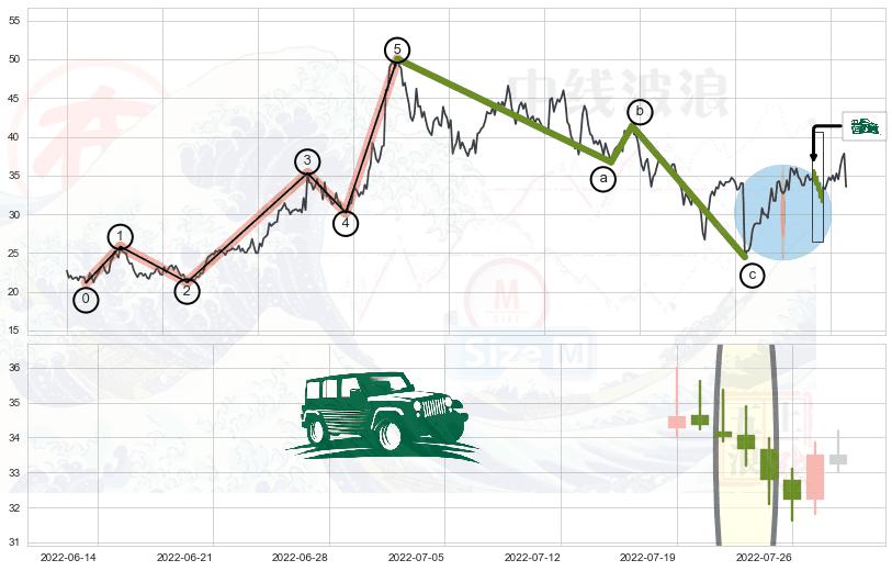 ➣ 波浪理论:猜想达到c点后小回调终止反转上涨 → 上涨 → 【拐点】临近 → 阶段均值回复结束后继续大周期趋势跟踪