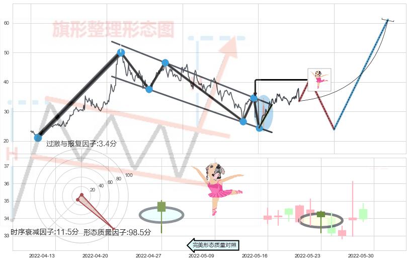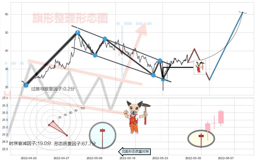 ➢ 看涨(低位)倒锤头线 🔜 降旗形阻力突破转换支撑上涨 综合量化分数:59.48 【偏多】