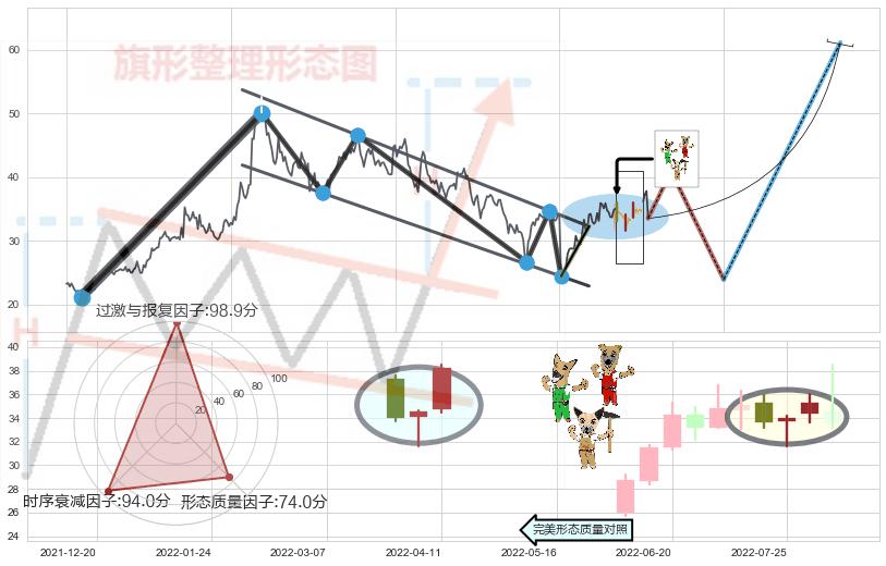 ➢ 【买1】: 激进型 买点 →(2022-06-23: 32.30 )形成突破降⚑旗形【整理】形态