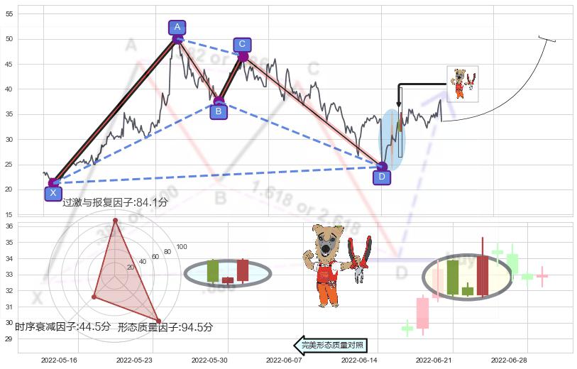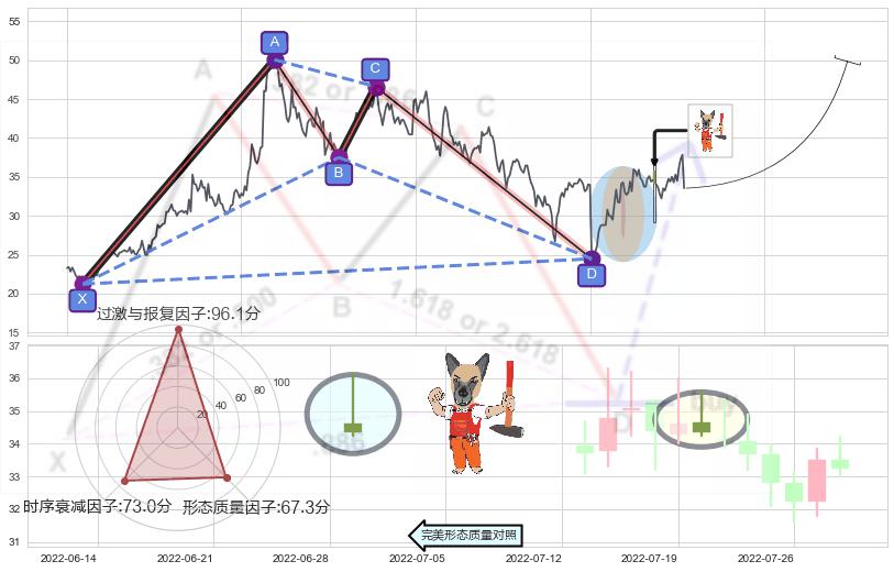 ➢ 锤头线(锤子线) 🔜 谐波蝙蝠d拐点上涨支撑 综合量化分数:53.45 【中性】