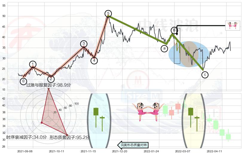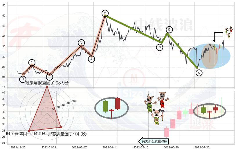 ➢ 下跌身怀六甲 🔜 波浪理论击穿破位C点继续下跌 综合量化分数:46.10 【偏空】