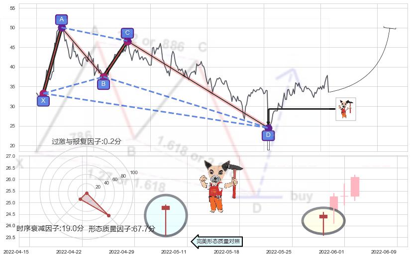 ➢ 锤头线(锤子线) 🔜 谐波蝴蝶d拐点上涨支撑 综合量化分数:52.25 【中性】