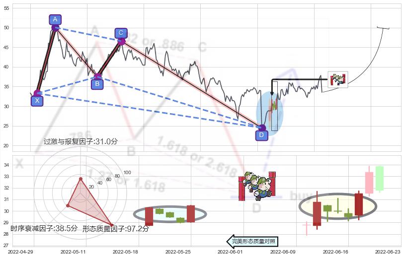 ➢ 双针探底 🔜 谐波蝴蝶d拐点上涨支撑 综合量化分数:50.35 【中性】