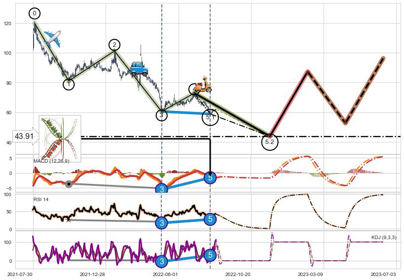 ➣ 5.1: 预测当前第5浪位置(2022-08-03, 58.93),仍然有下跌空间