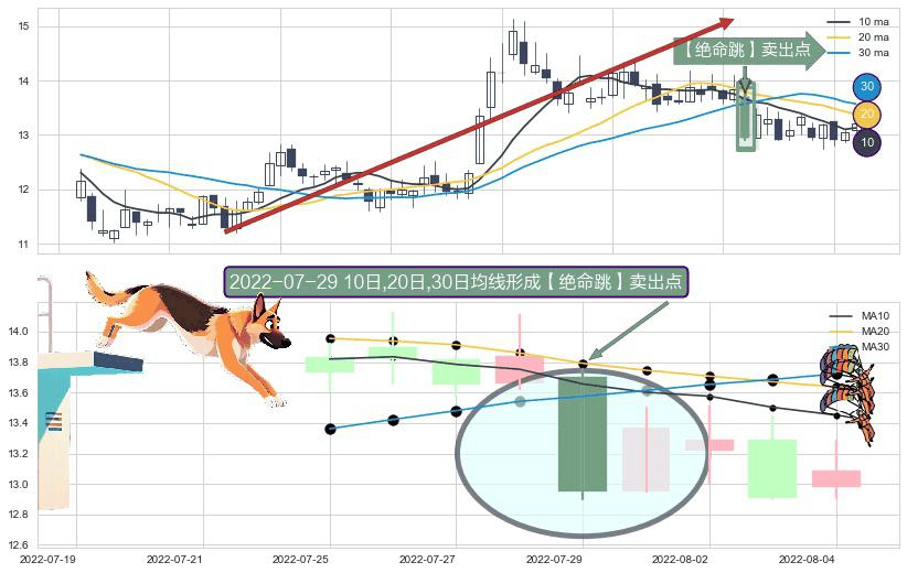 形态多维评估: ⚀ 2022-07-29日显现 10日-20日-30日均线 【绝命跳】卖出点 看空信号,后市看跌,卖出