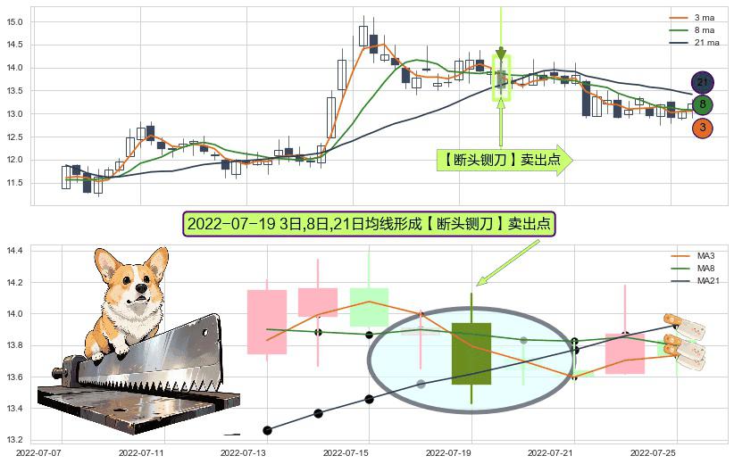 形态多维评估: ⚀ 2022-07-19日显现 3日-8日-21日均线 【断头铡刀】卖出点 看空信号,后市看跌,卖出