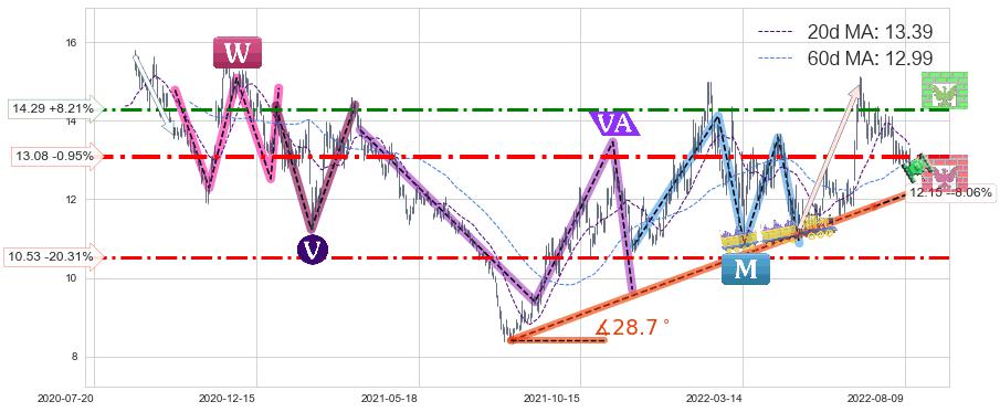 ➣ 【已确认突破】最后价格:13.21与最小【整理】第一目标价格→(2022-09-14: 15.74 )相较: 上涨空间【中等】