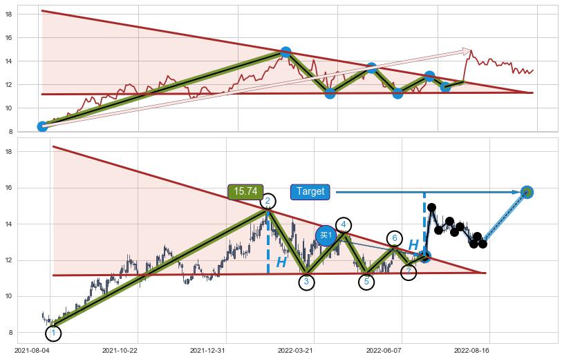 ➢ 2022-06-30到达第❸价格目标位置14.91