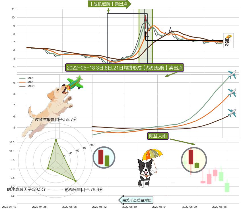 | 2 🅚:看跌(高位倒锤头)流星线 ➕ 🎢:【战机起航】卖出点均线组合卖出点信号形成后,猜想后续上行结束,持续回落下跌(均值回复) ☞ 看空信号 ⇥ 【均线】交织【🅚线】⇥ 综合量化分数: 48 | > |