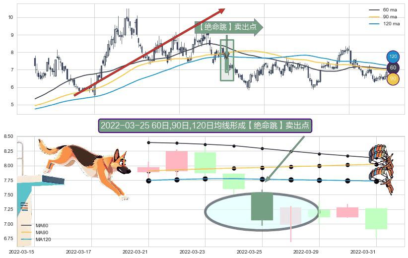 ⚀ 2022-03-25日显现 60日-90日-120日均线 【绝命跳】卖出点 看空信号,后市看跌,卖出