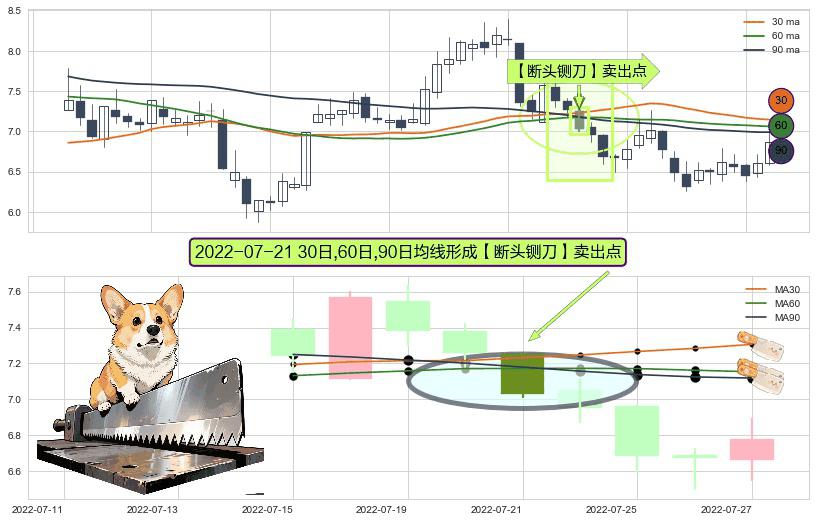 ⚀ 2022-07-21日显现 30日-60日-90日均线 【断头铡刀】卖出点 看空信号,后市看跌,卖出