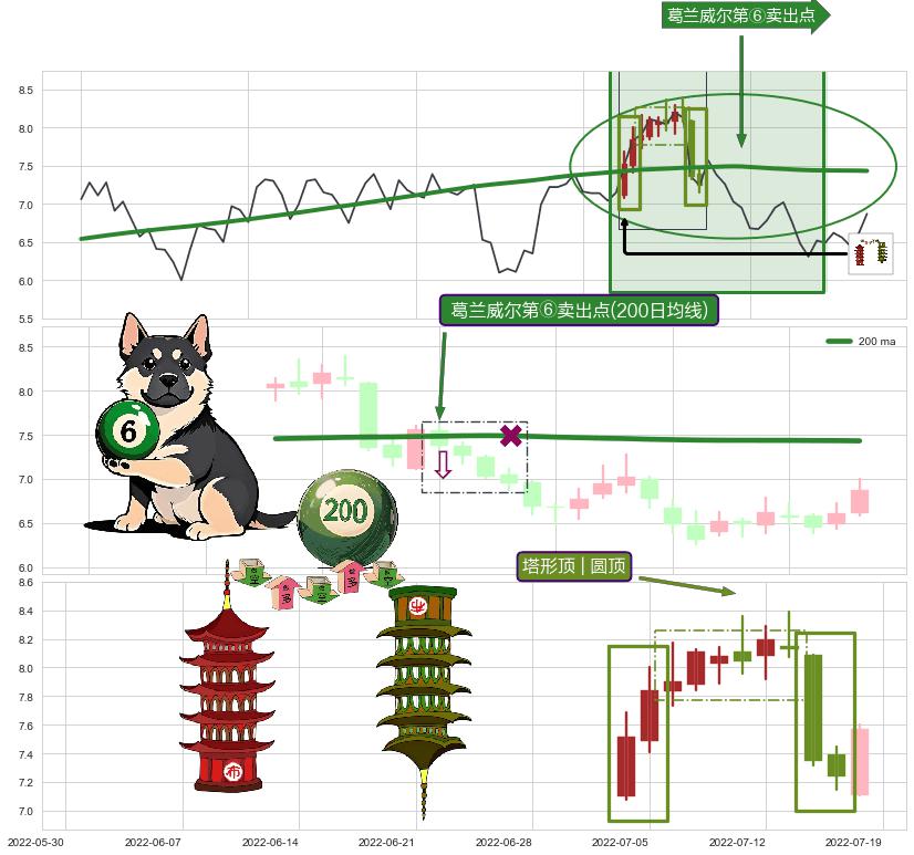 | 7 🅚:下跌两颗星 | 下跌三颗星 ➕ 🎢:葛兰威尔第⑥卖出点卖出点信号形成后,猜想后续上涨趋势反转下跌趋势(均值回复) ☞ 看空信号 ⇥ 【均线】交织【🅚线】⇥ 综合量化分数: 42 | > |