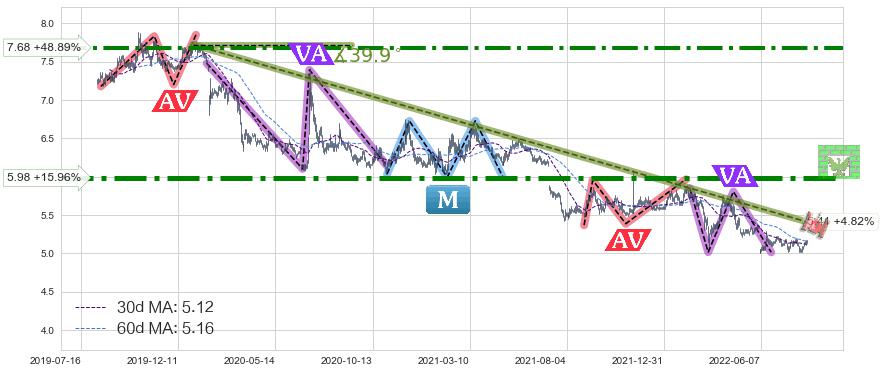 ♘ 阻力价格位7.68,可信任强度74.82%,距离最后交易2022-08-12形成的收盘价格5.16相差 +48.89%