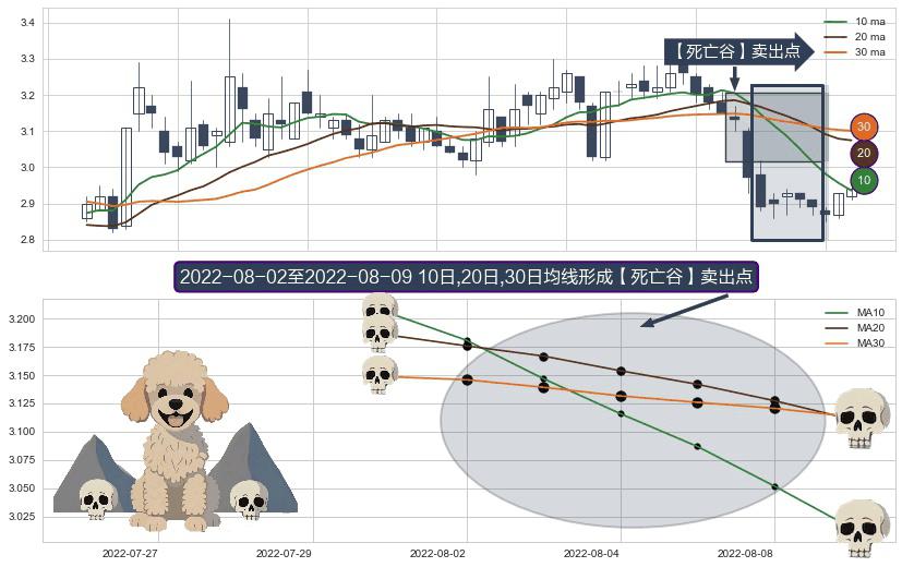 形态多维评估: ⚀ 2022-08-03-日至2022-08-09-日显现 10日-20日-30日均线 【死亡谷】卖出点 看空信号,后市看跌,卖出