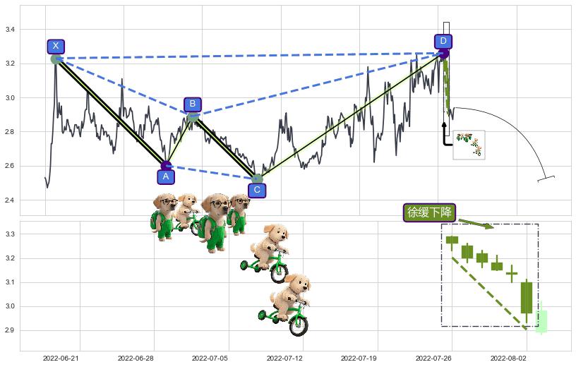 ➣ 已完成【鲨鱼】形态起点X: 2020-07-14, 终点D: 2022-07-25, 共494交易日