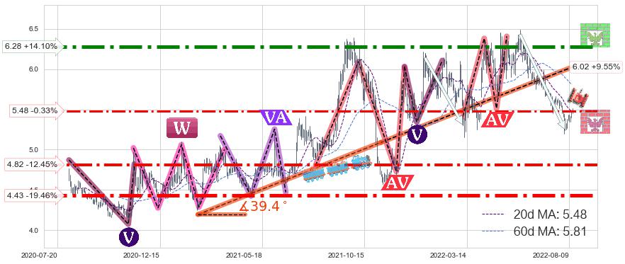 ♞ 20日均线:5.48,60日均线:5.81→ 快线<慢线