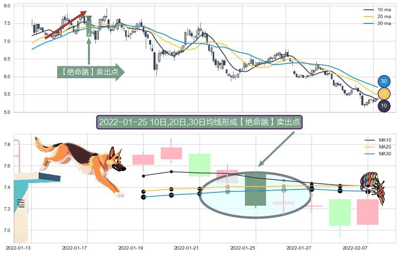 形态多维评估: ⚀ 2022-01-25日显现 10日-20日-30日均线 【绝命跳】卖出点 看空信号,后市看跌,卖出
