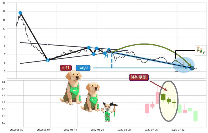 ➣ 【已达成】最小【整理】第一目标价格→(2022-08-03: 5.41 ), 后续继续【整理】下跌动力依然存在,下跌空间适中