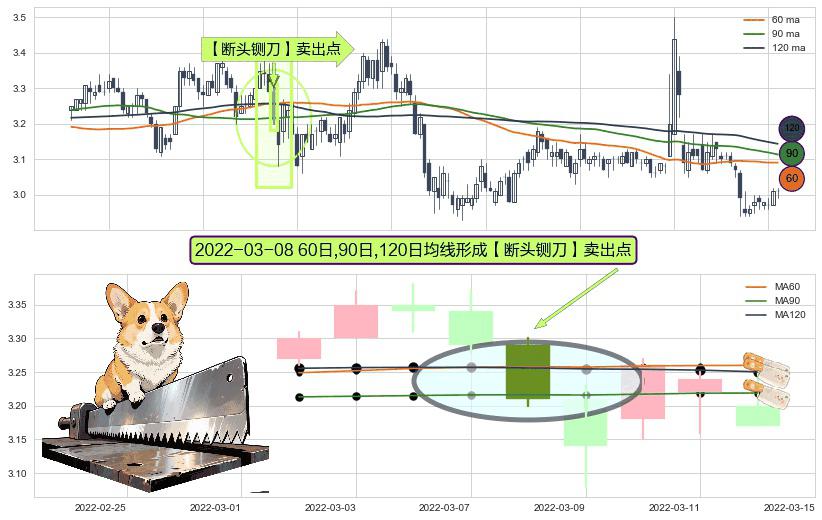 形态多维评估: ⚀ 2022-03-08日显现 60日-90日-120日均线 【断头铡刀】卖出点 看空信号,后市看跌,卖出