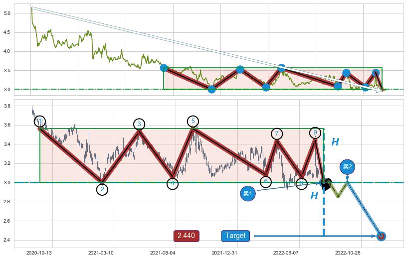 ➢ 【已确认突破】最后价格:3.010与最小【整理】第一目标价格→(2022-12-09: 2.440 )相较: 下跌空间【较大】