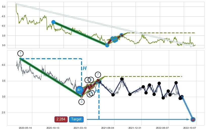 ➣ 【已确认突破】最后价格:3.010与最小【整理】第一目标价格→(2022-10-07: 2.284 )相较: 下跌空间【中等】