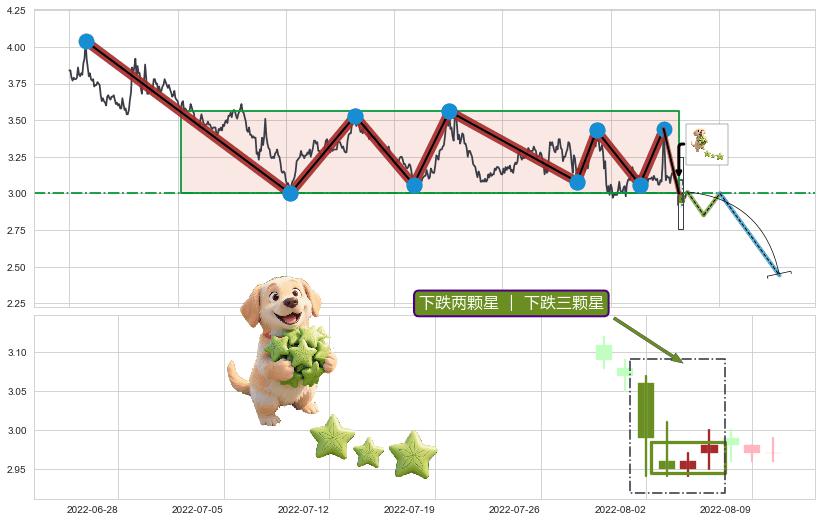 ➢ 【多方力量耗尽】已在2022-08-02突破矩形提供的【支撑】颈线 3.000 →箱形震荡盘整结束