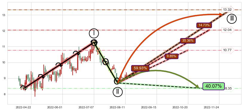 ➣ AI预测: 假定反转启动后, 第❶目标位置(2022-12-23, 10.80)