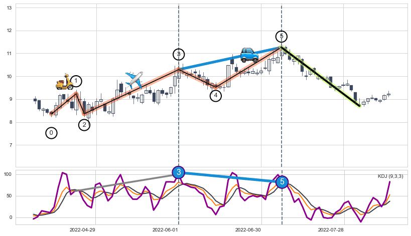 ➣ AI预测: 假定反转启动后, 第❸目标位置(2023-01-23, 8.35)