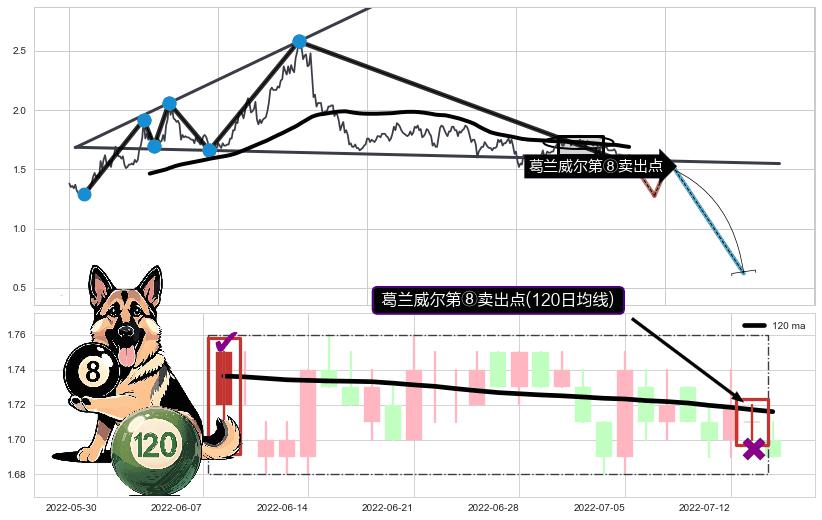 | 7 🅚:葛兰威尔第⑧卖出点 ➕ 🌊:波浪理论上涨5浪延续回调:猜想回调C点击穿破位,猜想持续蓄力回调abc下跌方向(大周期趋势均值回复后小周期持续趋势跟踪) ☞ 看空信号 ⇥ 【均线】交织【图形】⇥ 综合量化分数: 38 | > |