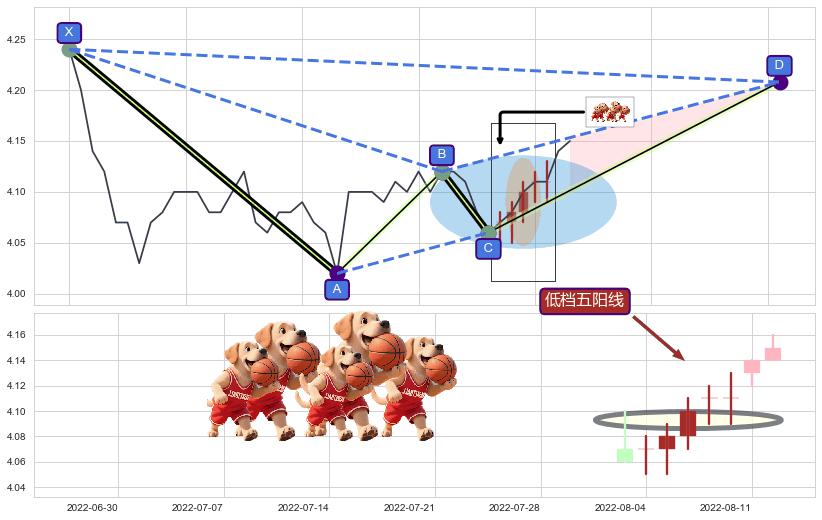 ➣ D点拟合预测价格4.21,距离最后交易收盘价格4.15相差 +1.39%