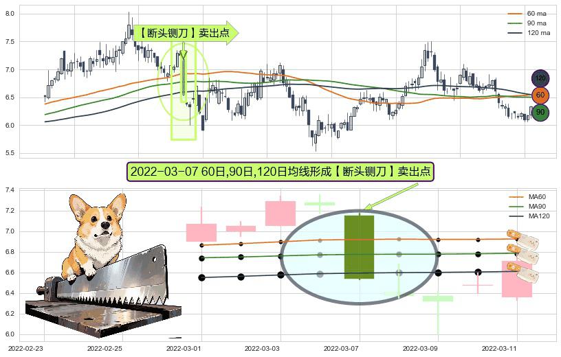 ⚀ 2022-03-07日显现 60日-90日-120日均线 【断头铡刀】卖出点 看空信号,后市看跌,卖出