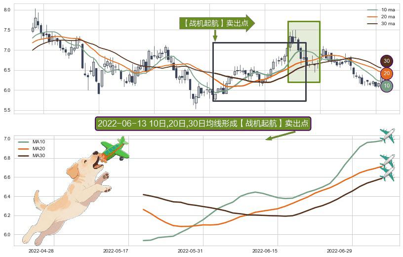 ⚀ 2022-05-19日-2022-07-05日显现 10日-20日-30日均线 【战机起航】卖出点 看空信号,后市看跌,卖出