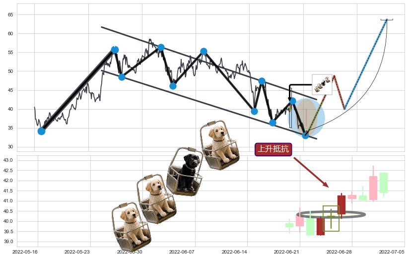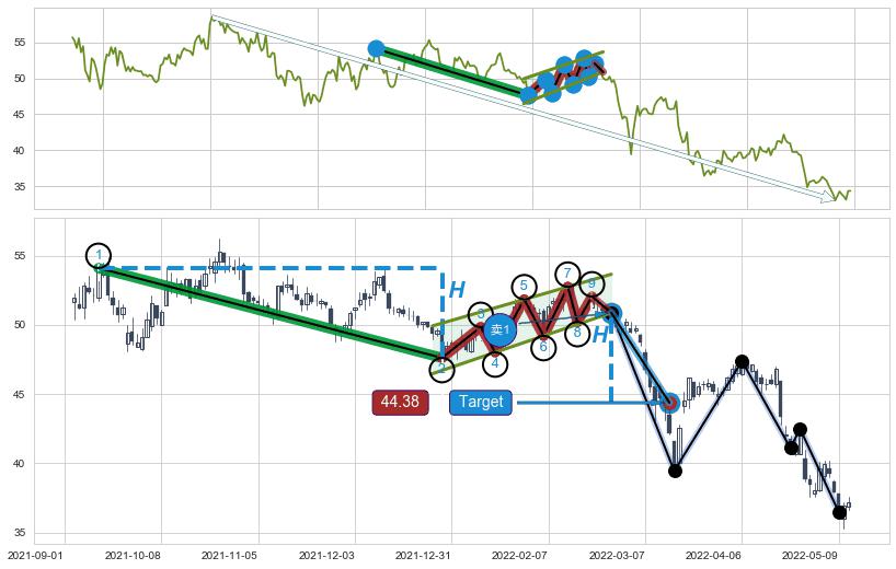 ➢ AI预测: 假定反转启动后, 第❷目标位置(2023-06-27, 47.22)