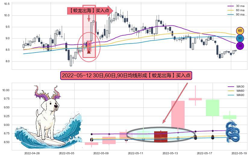 ⚀ 2022-05-12日显现 30日-60日-90日均线 【蛟龙出海】买入点 看多信号,后市看涨,买入