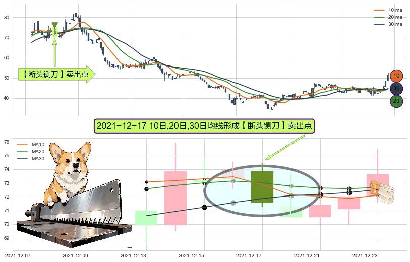 ⚀ 2021-12-17日显现 10日-20日-30日均线 【断头铡刀】卖出点 看空信号,后市看跌,卖出