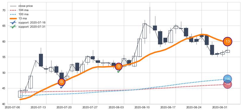 ⚄ 短期均线MA8上穿中期均线MA13形成的交叉是标准 黄金交叉