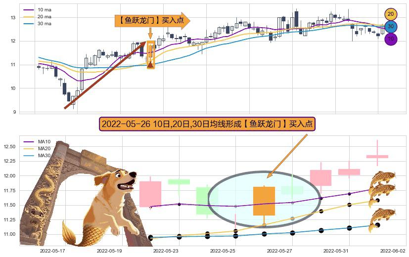 ⚀ 2022-05-26日显现 10日-20日-30日均线 【鱼跃龙门】买入点 看多信号,后市看涨,买入
