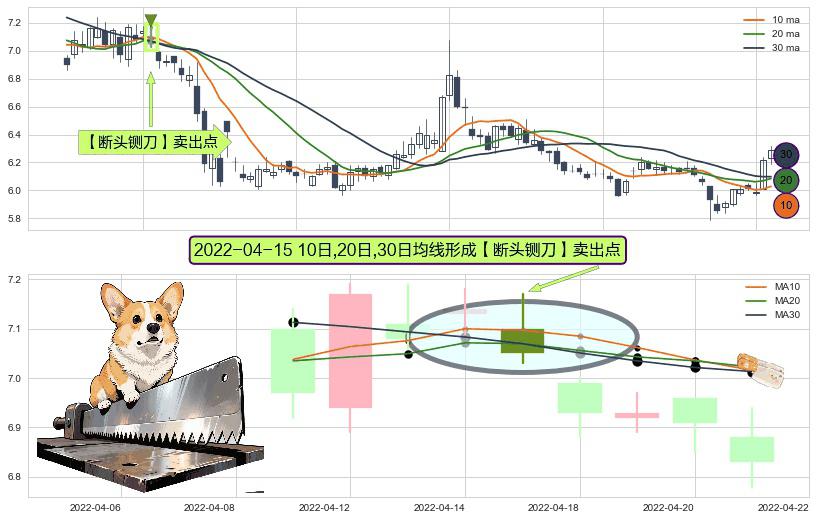 ⚀ 2022-04-15日显现 10日-20日-30日均线 【断头铡刀】卖出点 看空信号,后市看跌,卖出