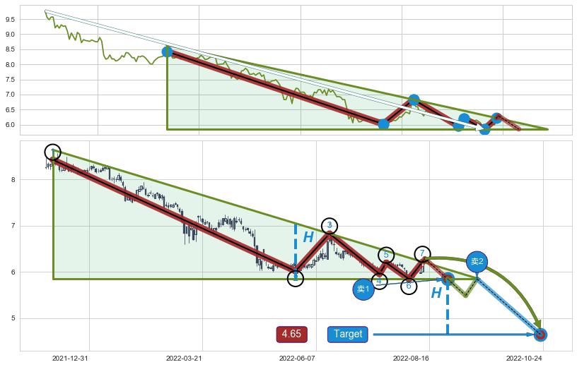 ➢ AI预测: 假定反转启动后, 第❷目标位置(2022-12-20, 6.45)