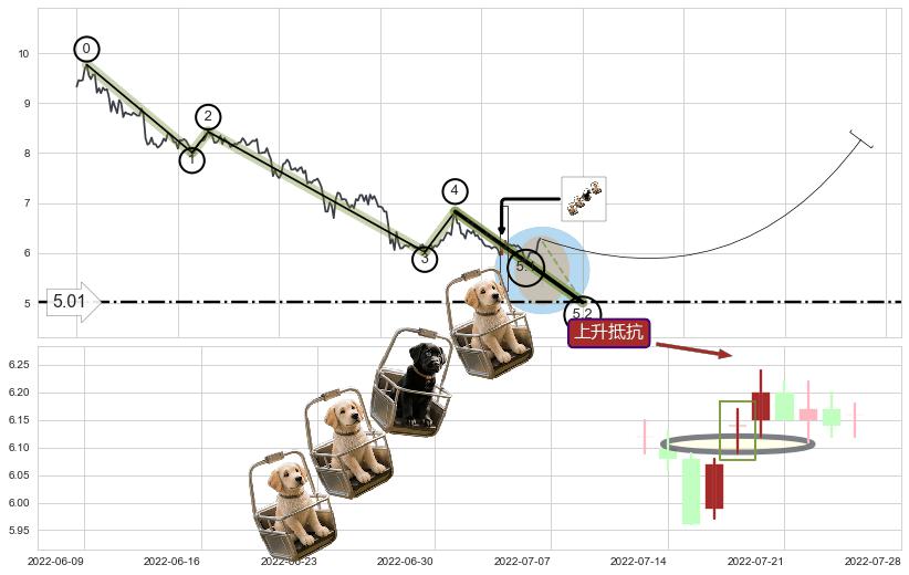 ➣ 5.1: 预测当前第5浪位置(2022-08-03, 5.85),仍然有下跌空间