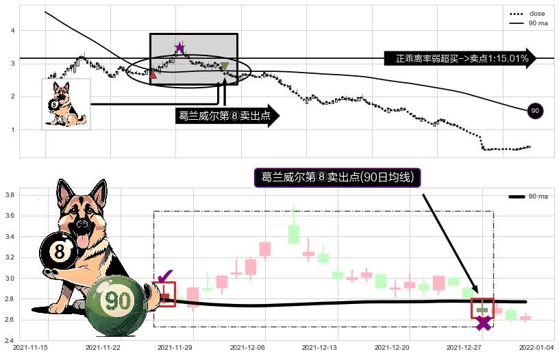 形态多维评估: ⚀ 2021-12-27-日显现 葛兰威尔均线 90日均线 第⑧卖出点 下降趋势的中继信号,后市看跌,卖出信号