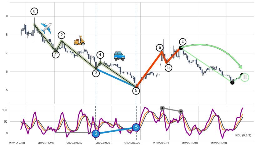 ➣ AI预测: 假定反转启动后, 第❸目标位置(2023-08-09, 5.15)