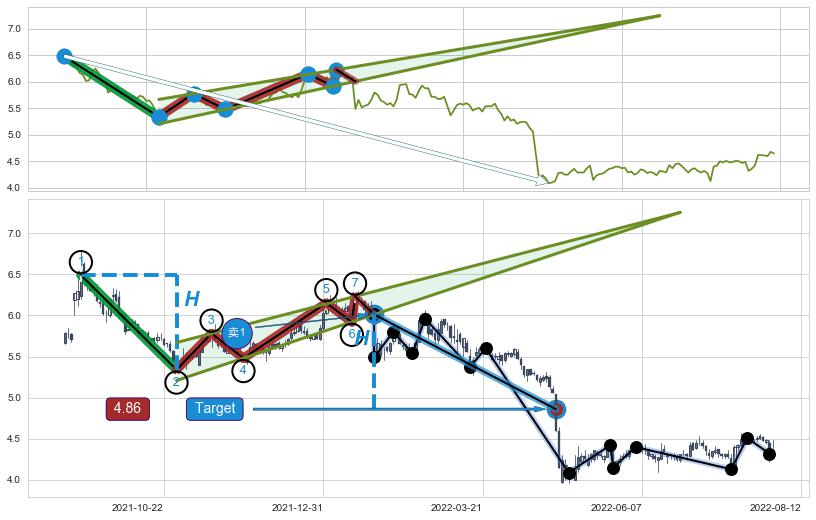 ➣ 【已达成】最小【整理】第一目标价格→(2022-04-25: 4.86 ), 后续继续【整理】下跌动力微弱,下跌较小