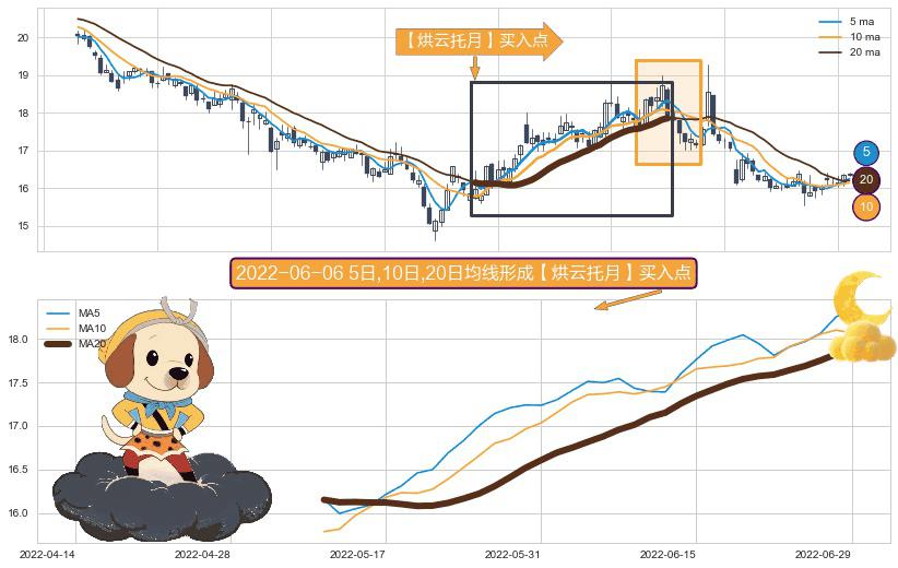 ⚀ 2022-05-11日-2022-06-29日显现 5日-10日-20日均线 【烘云托月】买入点 看多信号,后市看涨,买入