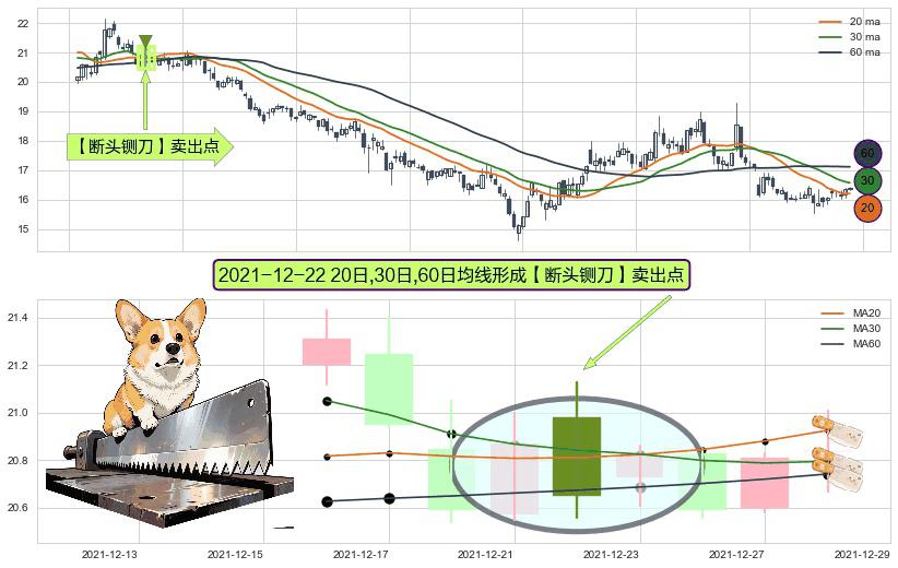⚀ 2021-12-22日显现 20日-30日-60日均线 【断头铡刀】卖出点 看空信号,后市看跌,卖出