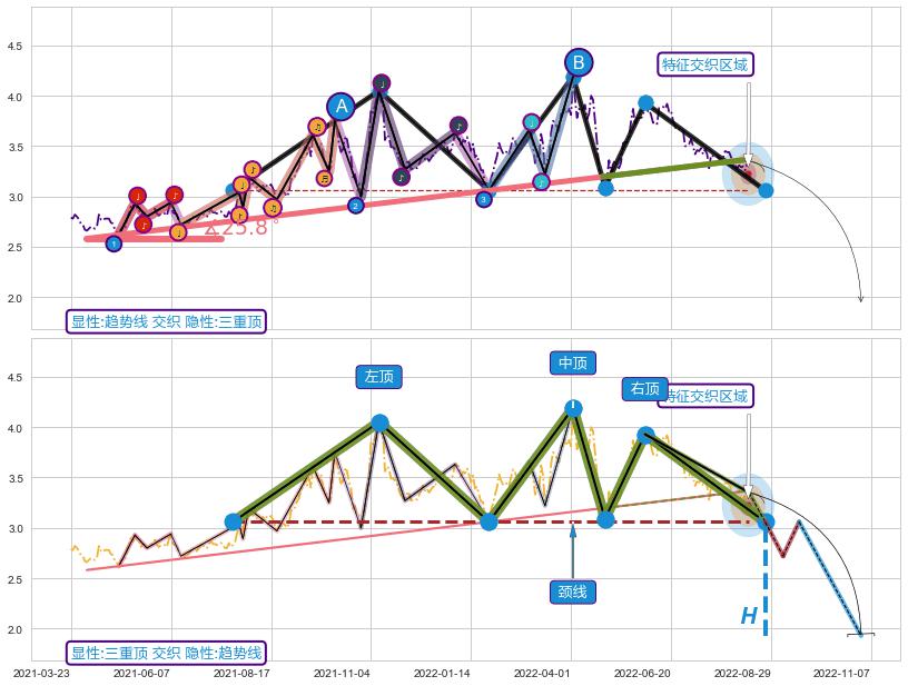 | 12 🅚:下跌抵抗 ➕ 📈:趋势线上涨趋势向下小回调强持续蓄力,猜想支撑位破位反转下跌(大周期均值回复) ☞ 看空信号 ⇥ 【🅚线】交织【图形】⇥ 综合量化分数: 47 | > |