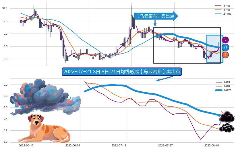 形态多维评估: ⚀ 2022-06-30日-2022-08-11日显现 3日-8日-21日均线 【乌云密布】卖出点 看空信号,后市看跌,卖出